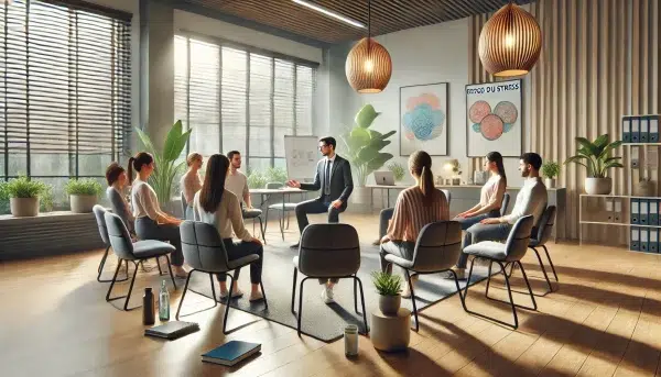 - Autodiagnostic et brainstorming (chaque participant comprend son propre rapport au stress)